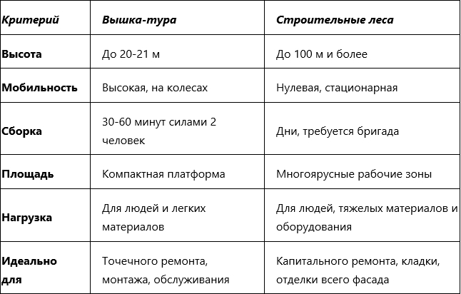 Стоите перед выбором: арендовать для объекта огромные леса или обойтись компактной вышкой-турой? Это как выбирать между грузовиком и легковушкой. Оба возят, но задачи у них разные. Давайте разберемся, что куда едет, чтобы вы не потратили деньги впустую.