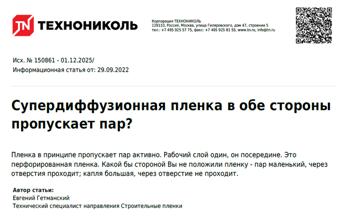 Производитель плёнок и мембран Ondutiss в своей инструкции также говорит, что: