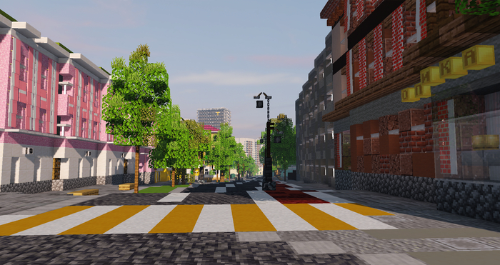 Всем привет! Сегодня пишу очередной пост про ход строительства Уфы в майнкрафте! Предыдущие посты очень хорошо собирали, посмотрим сколько соберёт этот. На протяжении последних месяцев я сосредоточился на улице Октябрьской революции и активно строил её (и таки достроил). Также строились прочие кварталы, однако отдельного поста заслуживает именно улица Октябрьской революции, по моему мнению это самый интересный проект к 450 летию Уфы. В реальности улицу только начали реставрировать и благоустраивать, а я решил сразу её сделать в майнкрафте. Все делалось по предоставленным рендерам проекта. И да, возможно чуть позже на реальной улице будут отличия от проекта и придётся что-то переделывать, однако отличия будут скорее всего незначительные. Теперь о самой улице, это одна из немногих улиц Уфы что сохранила свой первоначальный вид, конечно, вокруг улицы построили много высоток, но они никак не портят общую эстетику улицы. Среди интересных зданий по улице я могу выделить: Спасский Храм, Дом Демидовых (самый старый в Уфе), Пожарная станция и старый полицейский участок. Уже сейчас можно зайти на сервер TeamCis и прогуляться по улице. Искренне надеемся что в реальности улица получится тоже очень грамотно сделанной и станет точкой притяжения для гостей города. Спасибо за внимание!