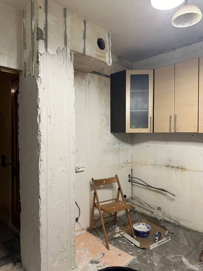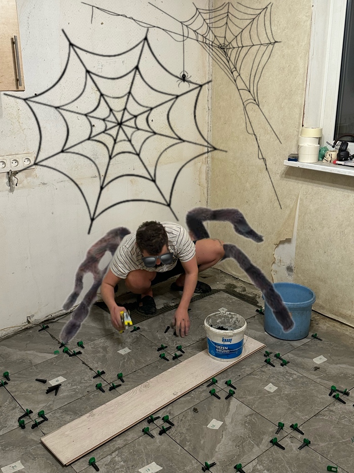 Это был февраль месяц, я тогда была в отпуске времени было много свободного. В итоге выравнивая в один из ночей этот арт объект, раздался звонок, у мужа умер отец и они с братом полетели срочно в родной город. Ремонт встал. Весной у нас на работе сезон и вот так мы прожили полгода без кухни и с ахтунгом в квартире, все комнаты завалены мебелью и стройматериалами.