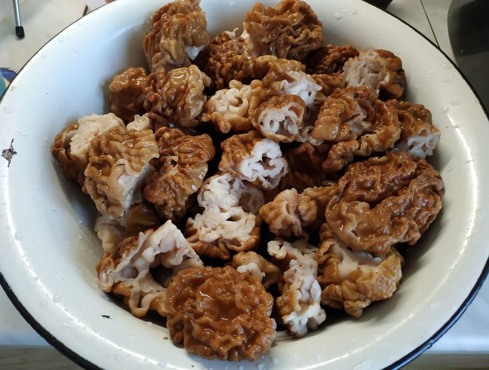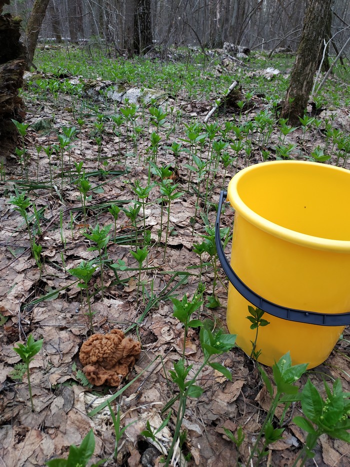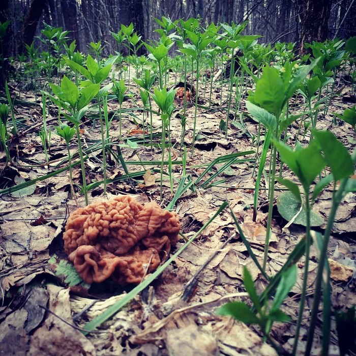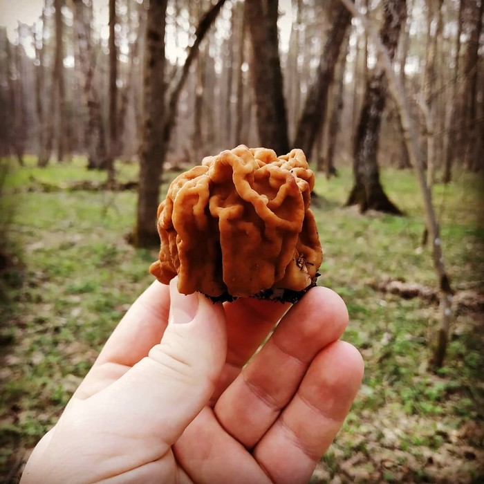 Всем, кто готовится во всеоружии встретить зомбиапокалипсис, сообщаю, что в Москве и окрестностях примерно на месяц раньше обычного появились вполне питательные и деликатесные строчки (Gyromitra gigas).