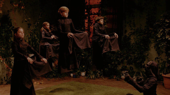 В фильме-спектакле Центрального детского театра космического Маугли, воспитанного таинственной инопланетной цивилизацией и обнаруженного землянами на планете Ковчег, играет пластичная актриса-травести Татьяна Курьянова в черном трико. Она больше похожа на андрогина, чем на 12-летнего мальчика из повести «Малыш», хотя гримеры постарались придать ее лицу тот самый «мертвенный, синевато-зеленый оттенок», который описывают Стругацкие. Главный режиссерский прием — проступающие из темноты отдельно от остального туловища ладони и лица персонажей, раскачивающиеся туда-сюда под ритмическую музыку. Вероятно, это раскачивание символизирует человеческие сомнения: надо ли оставить Маугли в покое или лучше попытаться его очеловечить? Во всей этой театральной условности есть даже какое-то ностальгическое обаяние для зрителя, посещавшего в детстве тюзовские спектакли, где детей, подростков и молодежь старательно изображали довольно зрелые актеры.