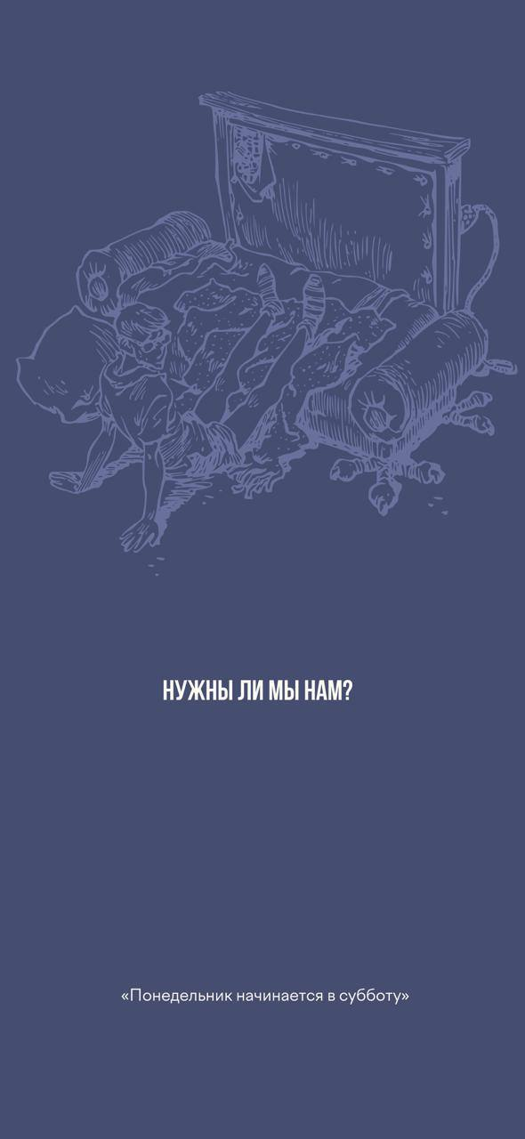 Самая оперативная экранизация Стругацких, в которую с пылу с жару вошла первая часть только что написанной «сказки для научных работников младшего возраста» — «Суета вокруг дивана». Один из первых спектаклей будущего корифея Ленинградского телевидения Александра Белинского похож на капустник и наполнен практически всеми доступными на тот момент простодушными телевизионными спецэффектами: в начале программист Александр Привалов ездит с сотрудниками НИИЧАВО на своей прокатной «Волге» на фоне рир-экрана, а потом активно внедряются элементы кукольного театра, с помощью которых изображены сказочные персонажи (Кот, Щука, Гриф). На кукольного персонажа смахивает и актриса Инна Слободская, играющая Наину Киевну Горыныч с наклеенным носом и огромной бородавкой.