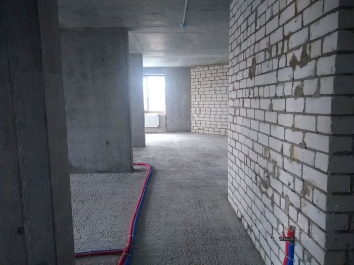 Стены были сразу оштукатурены финишной шпатлевкой, так как они вышли достаточно ровные. Повозился с местами где были перемычки. При заливке перемычек было смещение и пришлось ровнять более толстым слоем штукатурки.