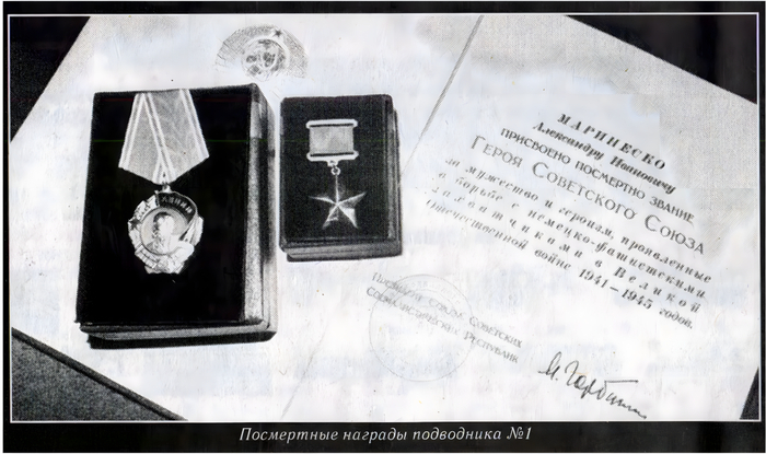 После смерти Маринеско судостроители обратились к главному адмиралу ВМФ Горшкову с просьбой присвоить одному из кораблей имя Александра Маринеско. На коллективном письме главком поставил резолюцию: «Недостоин».