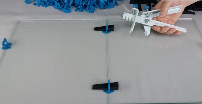 Принцип работы СВП заключается в следующем: после того, как плитки были уложены в нужном порядке, между ними вставляются клипсы и затягиваются до тех пор, пока все плитки не будут находиться на одном уровне и подходящем расстоянии друг от друга.