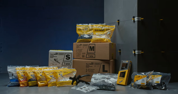 В комплект поставки входит 50 многоразовых СВП и зажимной ключ, что позволяет использовать их многократно для укладки большой площади.
