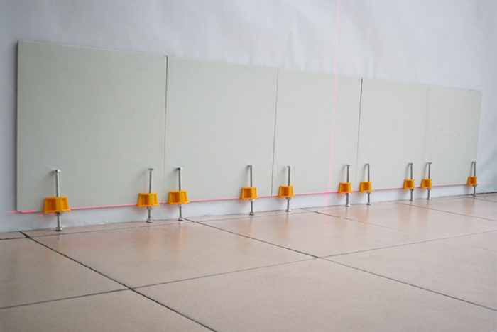 Еще одно немало важное приспособление, которое может пригодится при укладке крупногабаритной плитки на стену, это локатор для выравнивания плитки по высоте - инструмент, который позволяет выкладывать плитку на поверхность с заданным расстоянием до пола.