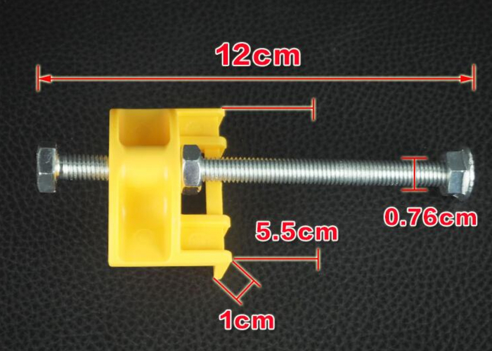 Инструмент состоит из длинного болта, который закрепляется в основание, и пластикового башмака, что удерживает плитку на месте. Башмак регулируемым, что позволяет настроить высоту плитки в диапазоне от 5 до 90 мм. Максимальная нагрузка: 120 кг.