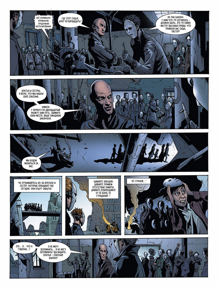 Дредд посещает подземный бункер, где Главный судья Вольт размышляет над своими собственными предполагаемыми недостатками как лидера, обвиняя себя в том, что он не смог предотвратить начало войны, и обдумывая отставку или самоубийство. По пути в кабинет Главного судьи Дредд встречает ДеМарко в медицинском крыле бункера, где он предлагает ей подать заявление на повторное вступление в Министерство юстиции. Их разговор прерывается звуком выстрела из кабинета Главного судьи, поднявшись на место происшествия, они обнаруживают, что Вольт застрелился.