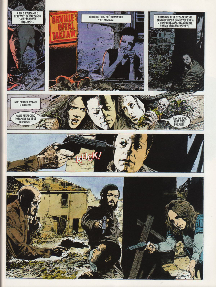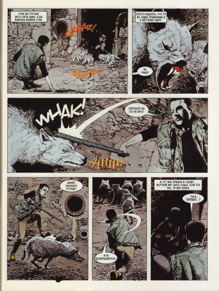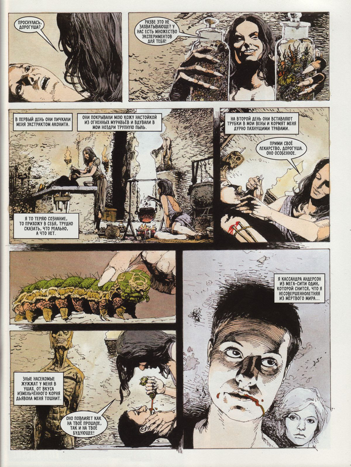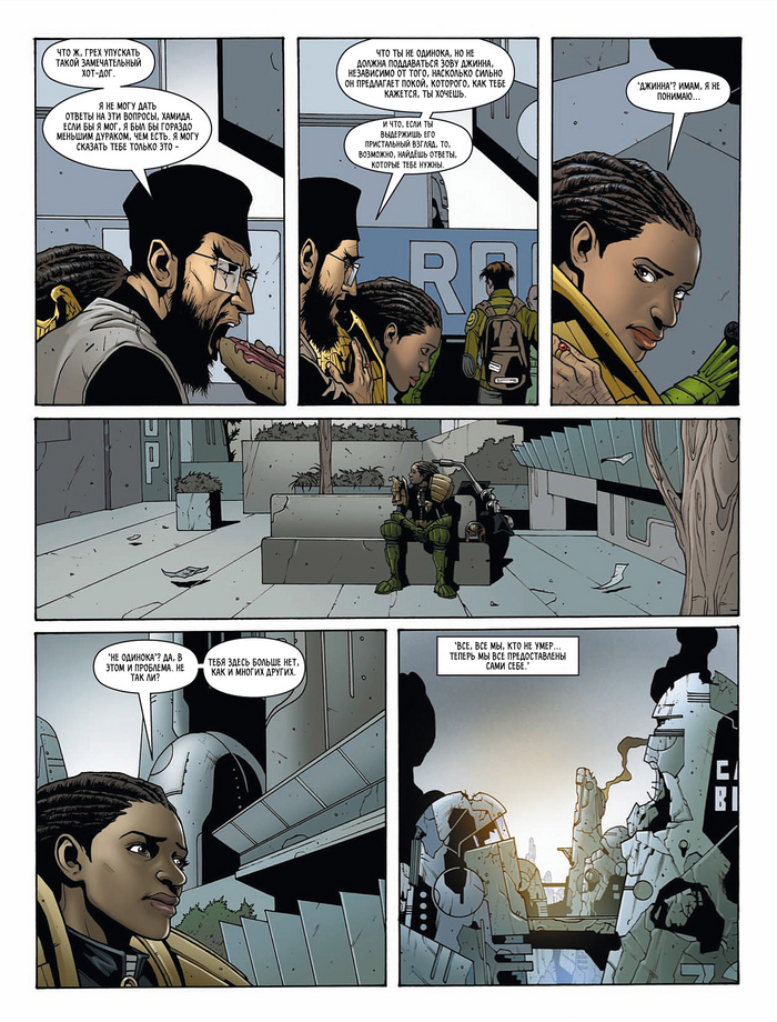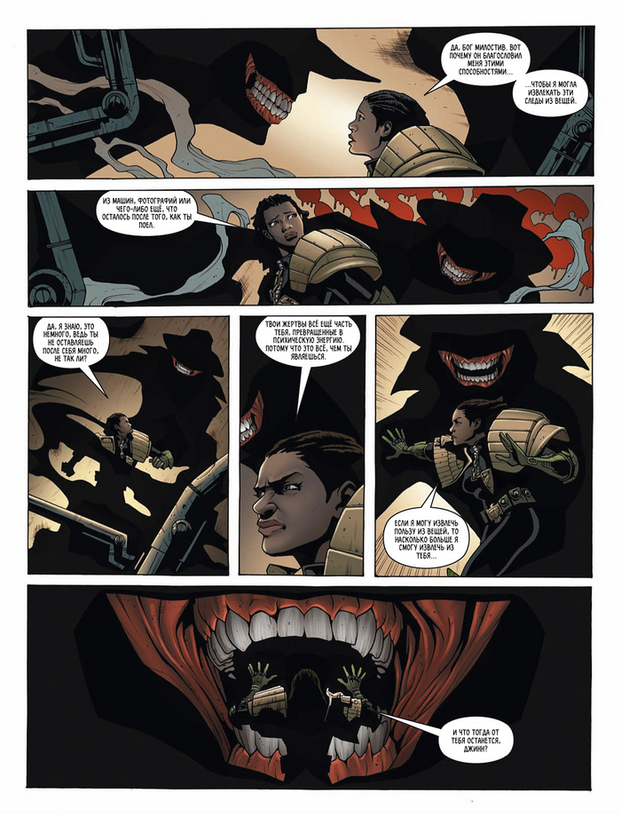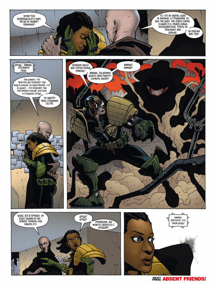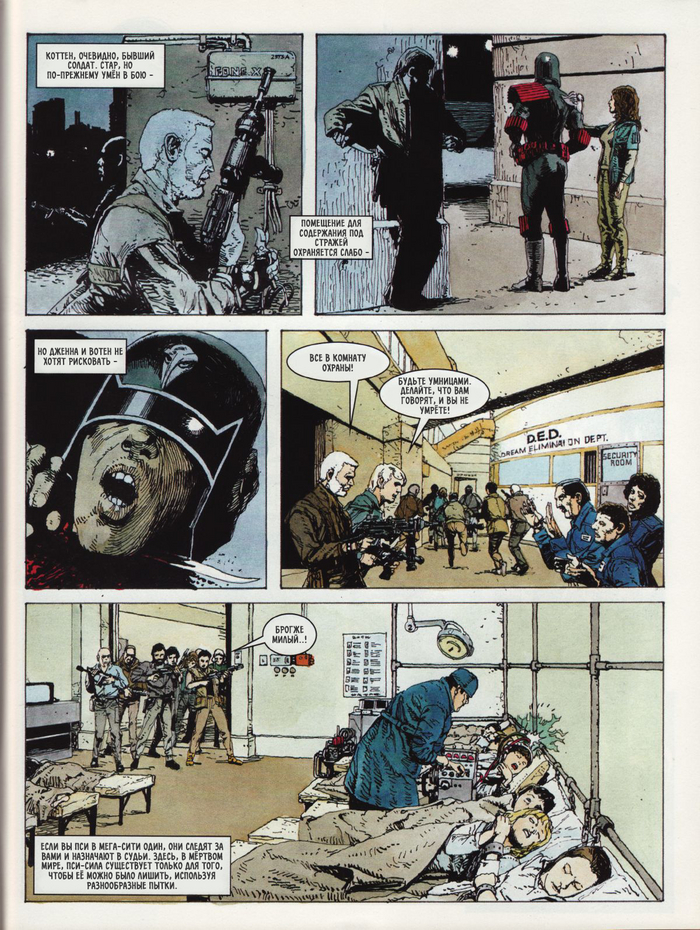 Надя работает на полковника Евгения Борисенко, офицера разведки Ист-мег Один, ослепленного вспышкой ядерного взрыва, который разрушил его город, и который с тех пор планирует разрушить город Дредда. Юргеса с семьей привозят к нему, и, угрожая пытками семье, Борисенко принуждает Юргеса сделать ему биологическое оружие, которое он намерен рассеять в Мега-сити Один.