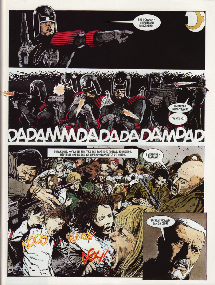 Дредд и несколько судей осаждаются на складе, но умудряются выжить и победить посланных против них роботов, хотя ДеМарко оказывается без сознания в результате взрыва, а судьи понесли большие потери. Однако во время конфликта Орлок проникает на склад, и в момент победы Дредда над роботами он убивает всех судей, кроме самого Дредда и бессознательной ДеМарко, и, помимо захваченной в плен Андерсон, похищает и Дредда. Орлок отвозит их к правительству Ист-мег Один - Диктаторату, который находится в Средиземноморском Свободном Государстве: огромной коллекции кораблей, состыкованных вместе в Средиземном море. Диктаторат объявляет, что намерен отдать Дредда под суд за геноцид и его роль в военных преступлениях во время уничтожения Ист-мег Один семнадцатью годами ранее. Судебный процесс будет транслироваться по всему миру в прямом эфире.