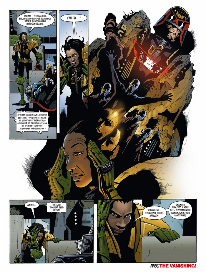 Хеннесси предсказывает больше убийств, включая ее собственное, но не успевает их предотвратить. Подсказки в видениях Хеннесси раскрывают местоположение Юргеса: на комплекс, где он содержится, совершают налет солдаты в сопровождении Дредда, который обнаруживает доказательства того, био-оружие было завершено. Он предупреждает город, который закрывает свои границы, но Борисенко уже отправил агентов, зараженных смертельной болезнью, названной "Жуком хаоса", для распространения инфекции. Поскольку болезнь неизличима и вызывает вспышки насилия у инфицированных, Старший судья Васс предлагает, чтобы сотни пострадавших людей, уже помещенных в карантин, были гуманно убиты и похоронены за пределами города. Судьи просят граждан сообщать о себе, если у них проявятся какие-либо признаки болезни, притворяясь, что их можно вылечить. Эта тактика в значительной степени успешна и почти сдерживает вспышку, пока спящий агент - судья Холдейн, не раскрывает план Васса прессе. Это не только отбивает охоту у инфицированных людей заявлять о себе, но и провоцирует бурную реакцию разъяренных граждан, и беспорядки быстро перерастают в открытую гражданскую войну. Закон и порядок нарушаются до такой степени, что судьи оказываются полностью подавленными и несут тяжелые потери, а Юридическая академия, где проживают все курсанты-судьи, разрушена. Также Холдейн освобождает Темных судей, которые начинают убивать всех, кого могут найти, включая самого Холдейна.