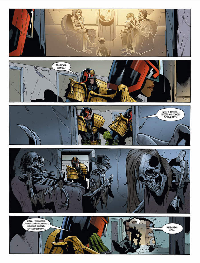 Тем временем судья ДеМарко, с помощью Джо Дредда, устраивается работать частным детективом. Ее первое задание - дело о пропавшем человеке, но позже выясняется, что клиент работает на криминальный синдикат "Френдз Моб", и использует ее, чтобы найти этого человека, потому что они хотят его убить. ДеМарко удается найти их предполагаемую жертву и спасти ему жизнь. Мужчина сообщает, что работает на складе, в котором хранятся новые судейские пистолеты "Законодатель" перед отправкой в Министерство юстиции для замены старых моделей, он был подкуплен, чтобы позволить "Френдз Моб" поменять микрочипы в оружии на новые, но не знает для чего.
