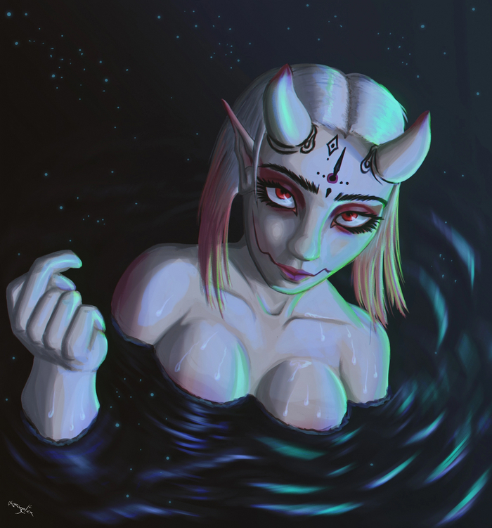 Та же героиня но в предыдущем посте: Нарисовал демонессу, но обе ступни у неё оказались правые. Пришлось исправлять