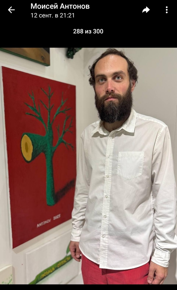 Антоша выставляется в Севкабеле, в Выборге в Центре современного искусства, на Пушкинской 10, в галерее Parazit. Если вы с ним знакомы, знайте, что он сволочь, подлец, гнида и крыса. За жалкую двадцатку так обмочиться с репутацией – ну, оно того не стоило. Если вы не знакомы с Моисеем – будьте бдительны, сумасшедшие среди нас.