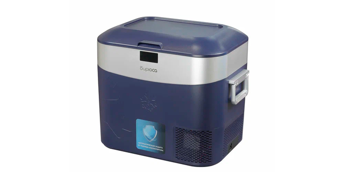 Теперь перейдем к ТОП-5 лучших компрессорных автомобильных холодильников, которые отличаются более высокими показателями охлаждения. Открывает раздел Бирюса НС-22P5 – компактная модель в аккуратном форм-факторе, выполненная в темно-синем цвете. Она наделена крышкой на магнитах с фиксатором для устойчивого положения в открытом виде и двумя боковыми ручками для удобства переноса. Внутренний объем камеры составляет 22 л. Для удобства размещения в комплекте предусмотрена корзина для мелких предметов, которую можно установить внутрь.