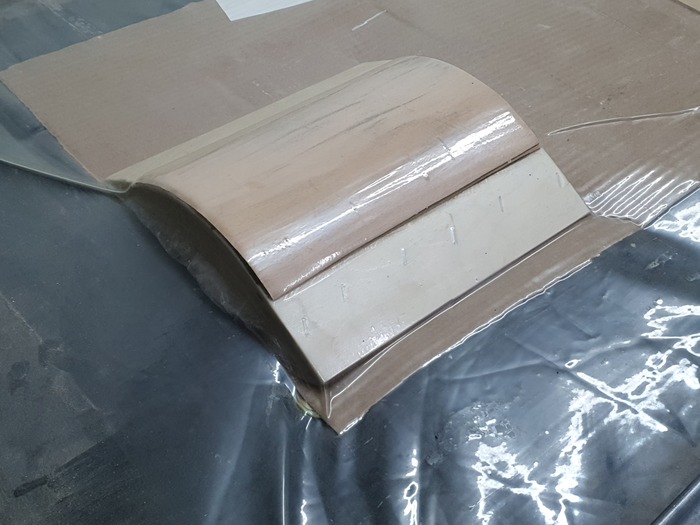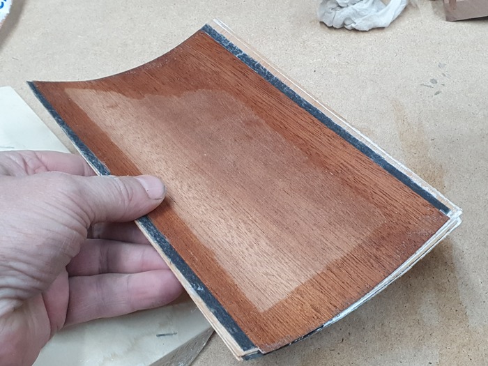 Самодельная кривая фанера готова. Тут виден весь бутерброд. Толщина получилась больше 5мм.