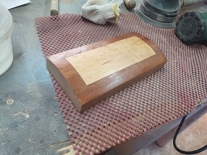 Шпон, фанерки и прочее я клею на самодельном вакуумном столе, который собрал за пару вечеров. Как раз на фото ниже клеится выпуклая крышка из шпона.