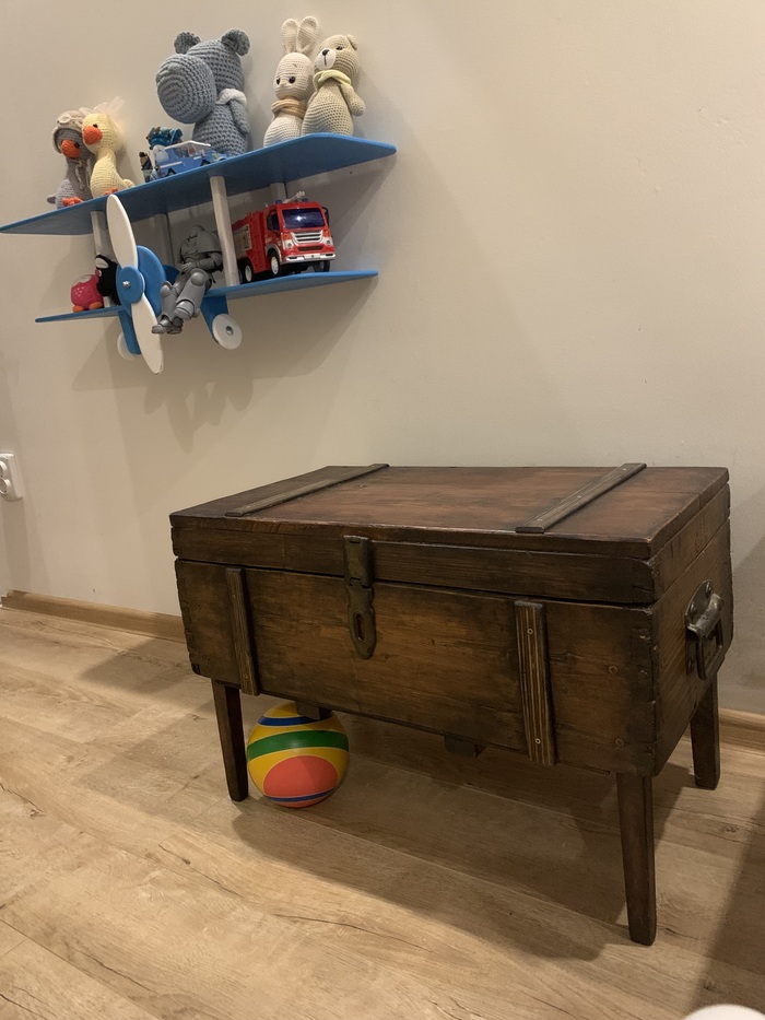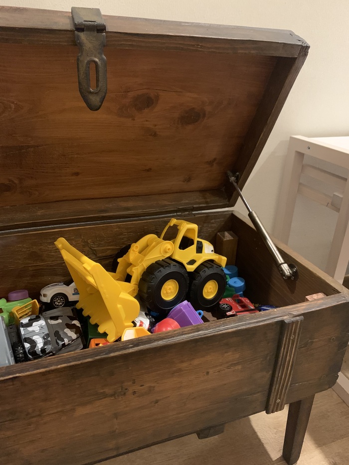 При очередном возмущении от состояния ленты «лучшего», решила начать с себя и хотела бы с радостью поделиться нашей с родителями маленькой поделкой — сундука для детских игрушек. Сделали из ящика с Авито и при помощи папиных прямых рук :)