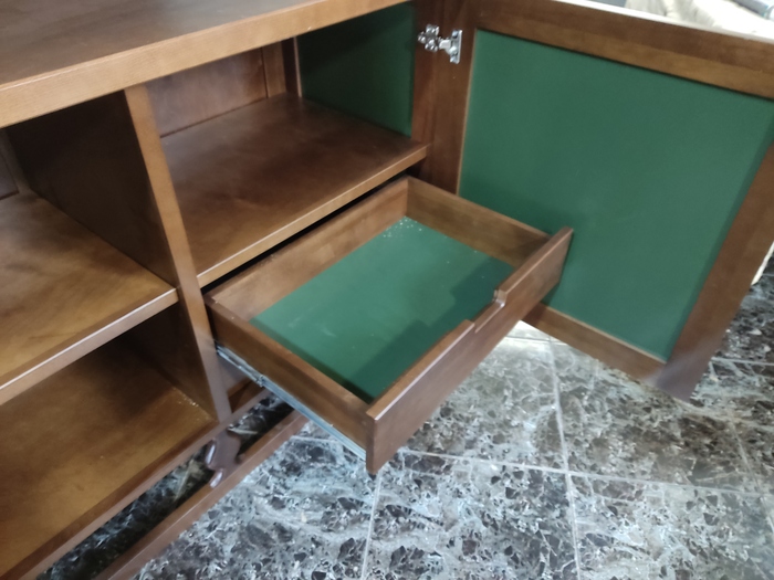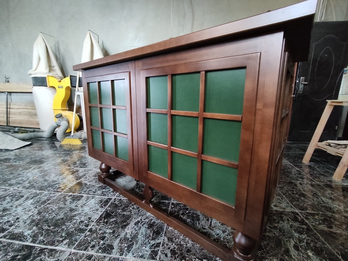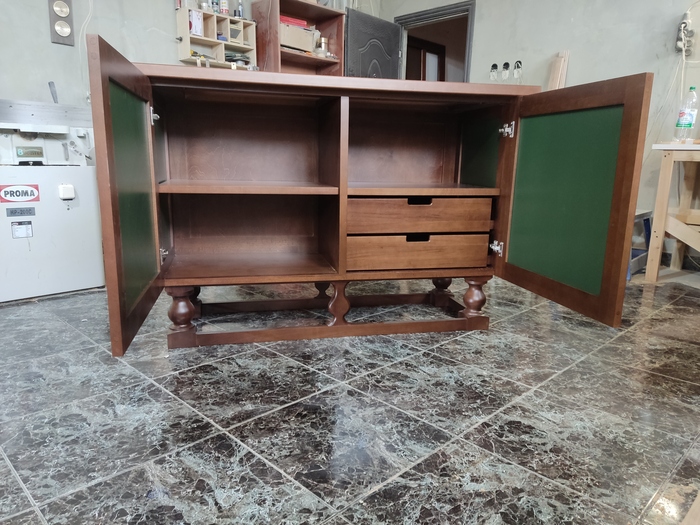Фото после установки фурнитуры и покрытия лаком. Лак на этот раз акриловый двухкомпонентный. Чаще я использую однокомпонентный, но он поднимает ворс и может расслоить шпон.