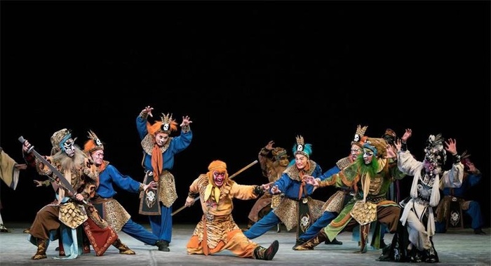 Итак, постановка пекинской оперы "Истинный и ложный Царь обезьян" (真假美猴王) заметно отличается от "Переполоха в Небесных чертогах", о котором мы писали ранее, по масштабности и насыщенности экшеном. Упор в ней больше на пение и диалоги, чем на залихватский дух весёлой драки. Но это вовсе не значит, что зрелищность и акробатика отсутствуют полностью и в постановке не на что посмотреть.