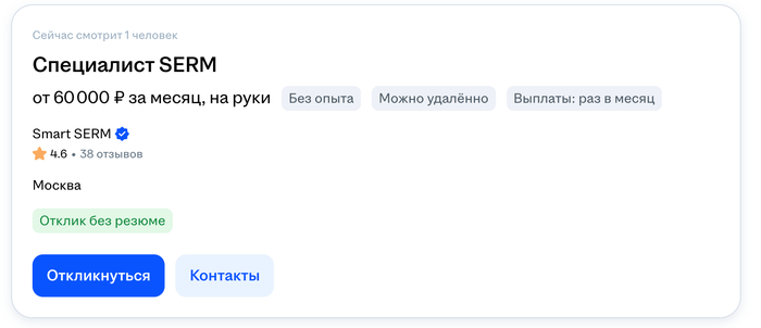 Есть вакансии от 100,000 ₽/мес, что помогает ориентироваться по бюджету