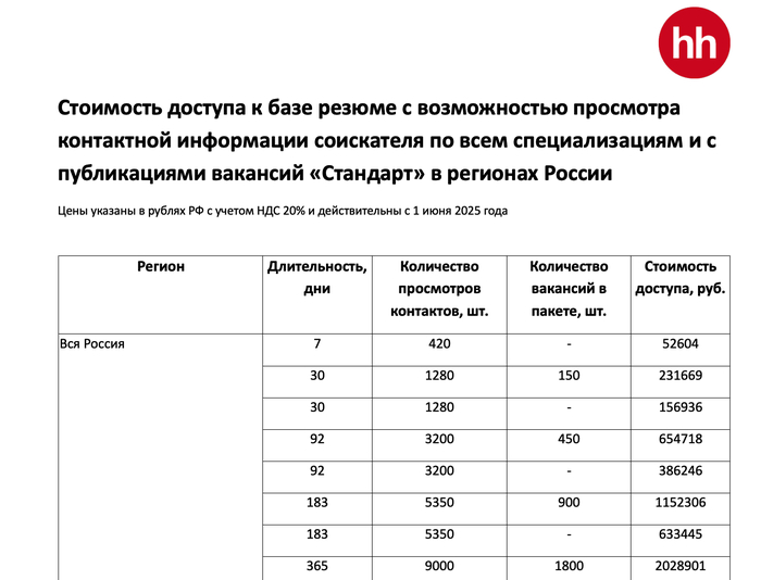 Публикация резюме и вакансий — в среднем от 100,000 ₽/мес