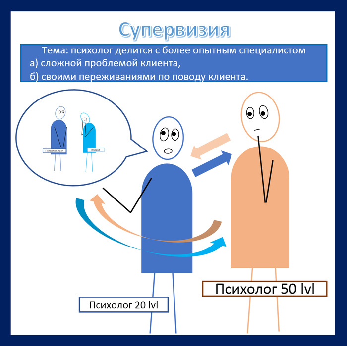 То есть я как психолог работаю с клиентом, хожу на личную терапию как клиент, а еще посещаю интервизии и супервизии. В чем разница-то?!