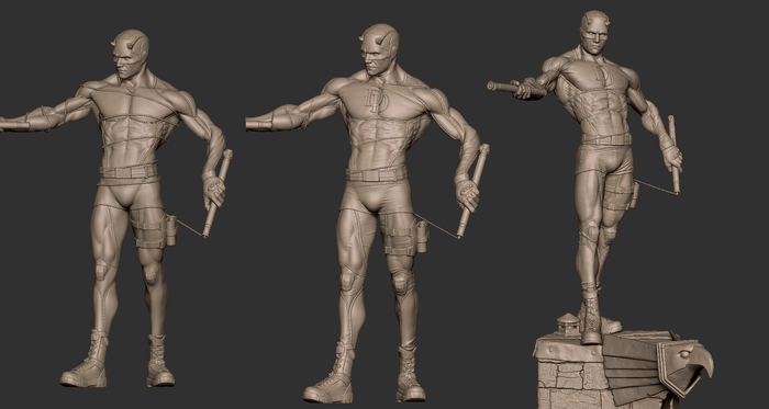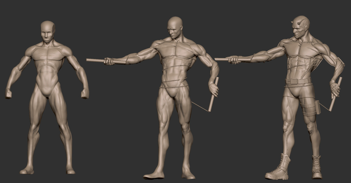 Это скриншоты этапов скульптинга. Сначала я делаю базу с правильными пропорциями и анатомией. На сколько они правильные зависит уровень знания анатомии.