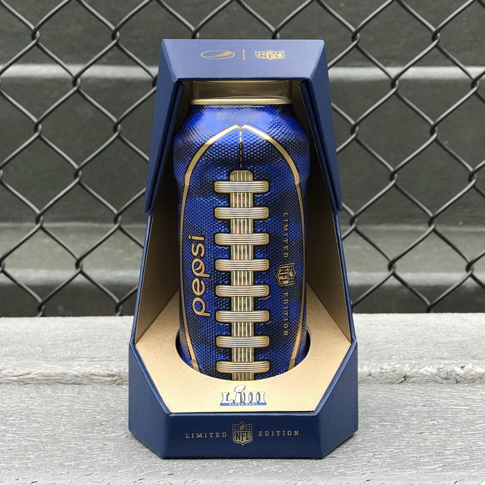 В честь очередного Суперкубка в США выпустили банку Pepsi, напоминающую мяч для американского футбола. В PepsiCo Design + Innovation создали супер лимитированную серию банок в форме мяча для американского футбола. Банка не только «зашнурована», но и имеет текстуру мяча. Superbowl 53 (финальная игра за звание чемпиона Национальной футбольной лиги США) представлял собой уникальную возможность для бренда, поскольку проходил на «поляне» Coca-Cola в Атланте.
