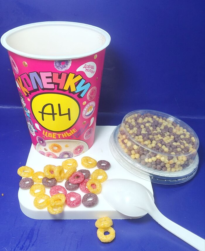 Ещё один вырвиглазный продукт для детей от Влада А4, просто добавь молоко и завтрак готов. В стаканчике есть ложка, но ее можно смело выкинуть, потому что она из тонкого пластика, сильно гнётся и есть ей не очень удобно. На удивление, колечки и шарики почти не сладкие, это меня и зацепило, не знаю почему, но мне было сложно оторваться от этого стакана, вроде отставлю в сторону, но проходя мимо зацеплю ложку-другую. Если вы любите сухие завтраки с минимальным количеством сахара, то вам тоже должно понравиться.