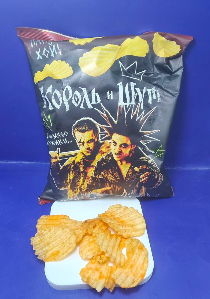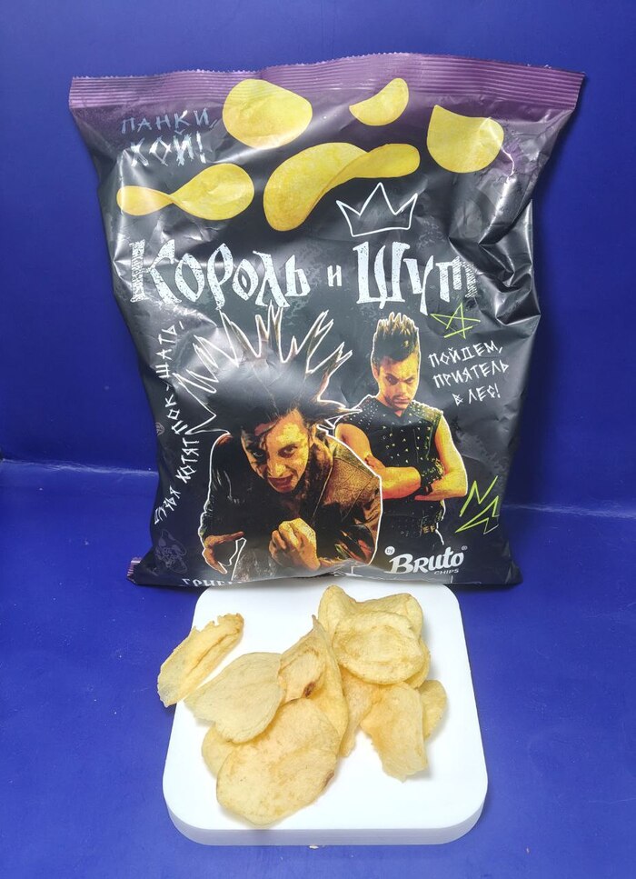 Ещё один товар с рекламой фильма "Король и шут. Навсегда", пиво давно есть на полках, вот и чипсы подоспели. Производство бренда Bruto из Ростовской области, пробовала их продукцию, не осталась в восторге. Я настроена очень скептически, когда вижу еду от блогеров или с рекламой фильма или мультика, понятно, что это делают для рекламы, а на качество продукта обычно кладут большой болт. Но здесь я была приятно удивлена, во-первых, за рефлёность всегда плюс, аромки не пожалели, ненавязчивый мясной вкус, оторваться сложно, как и от всего вредного. Ярко, вкусно, ароматно (лично для меня).