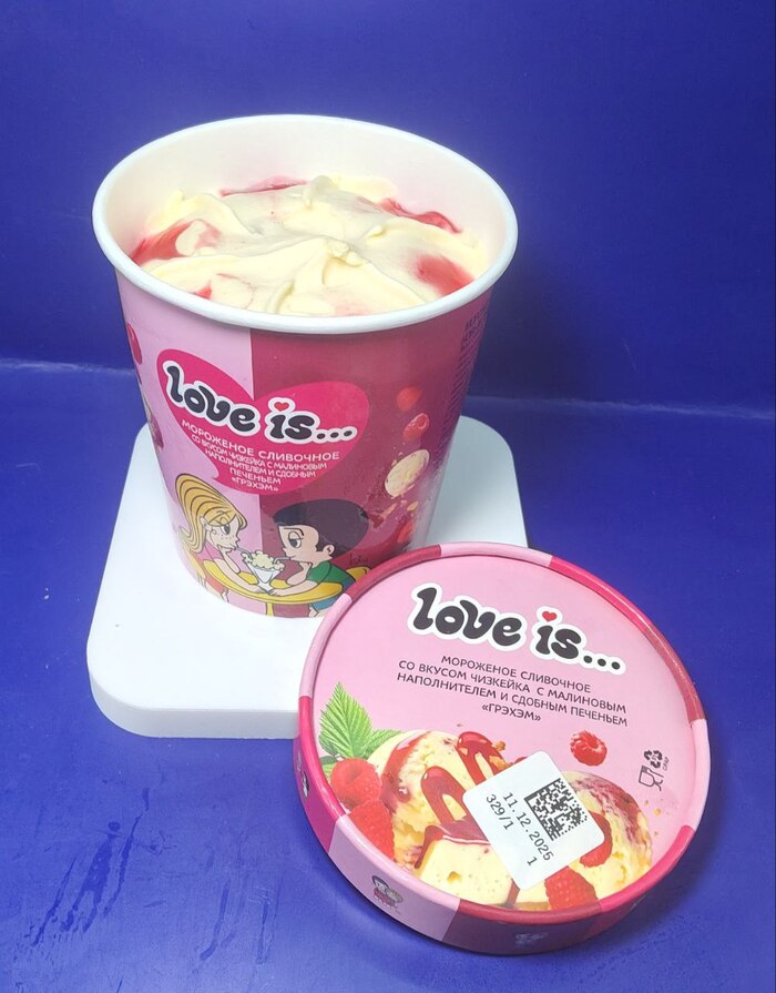 Мороженое Love is со вкусом чизкейка с малиновым наполнителем 300 руб., 270 гр.