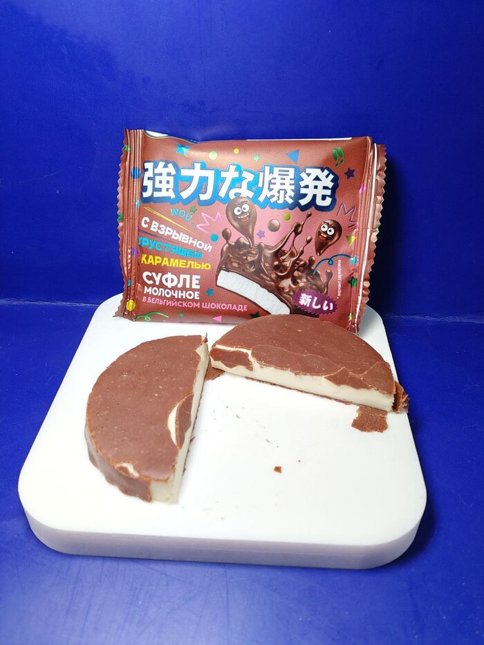 Это всё тот же В. П. Пастухов с уже привычными иероглифами и весёлыми рисунками на пачке. Запах и вкус манго, действительно, есть, но не химически-выпирающий, а вполне стабильный. Хороший шоколад, нежно, тает во рту, вау-эффекта не создаёт, просто вкусно. Насчёт цены сами думайте, для меня много 100 рублей за одну "зефирку".