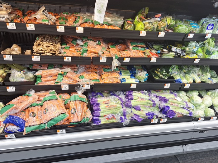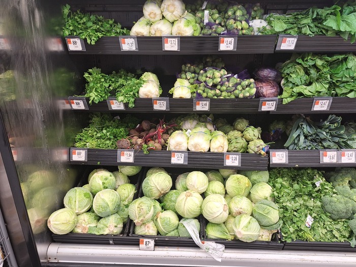 Про овощи и фрукты - американцы редко что-то готовят,овощи и фрукты мало покупаются, а по вкусу они как трава,тут круглый год продают клубнику ,персики,виноград ,черешню,но я знаю их настоящий вкус ,так как я жил в Краснодарском крае и закупался на рынке, где фрукты были настоящие и по сезону. Если хочешь купить в Америке настоящие фрукты или овощи (имею ввиду с нормальным вкусом) то нужно покупать в специальных магазинах, где они помечены надписью 'organic' и они обычно в два раза дороже.