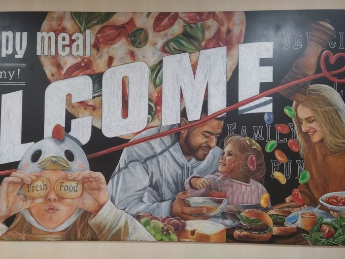 Есть своя кухня где готовят бенто, жарят курицу, делают салаты и другую еду.