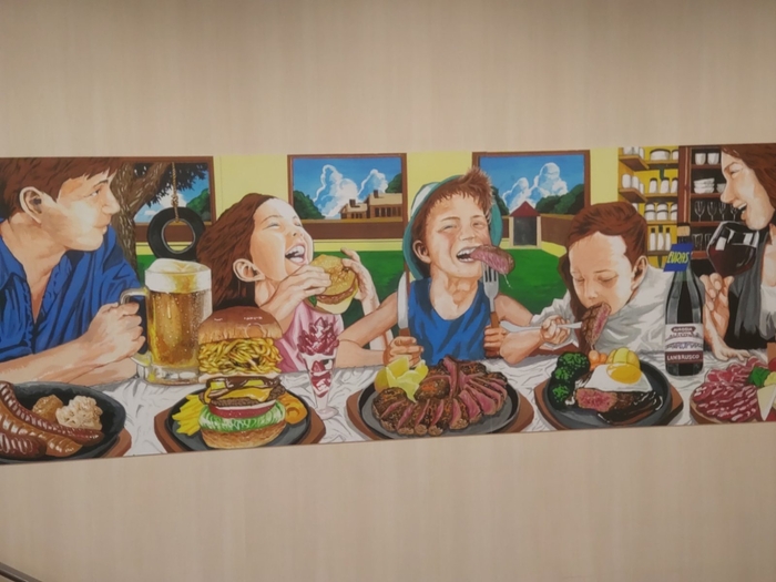 Есть своя кухня и пекарня (возможно вне магазина). Вот не уверен, либо там приготовленная еда более изысканная, типа миниатюрных сосисок в тесте по цене целой, либо я просто редко там бываю. В будни работники проводят дегустации товара - не наешься, но бесплатная вкусняшка тоже в радость.