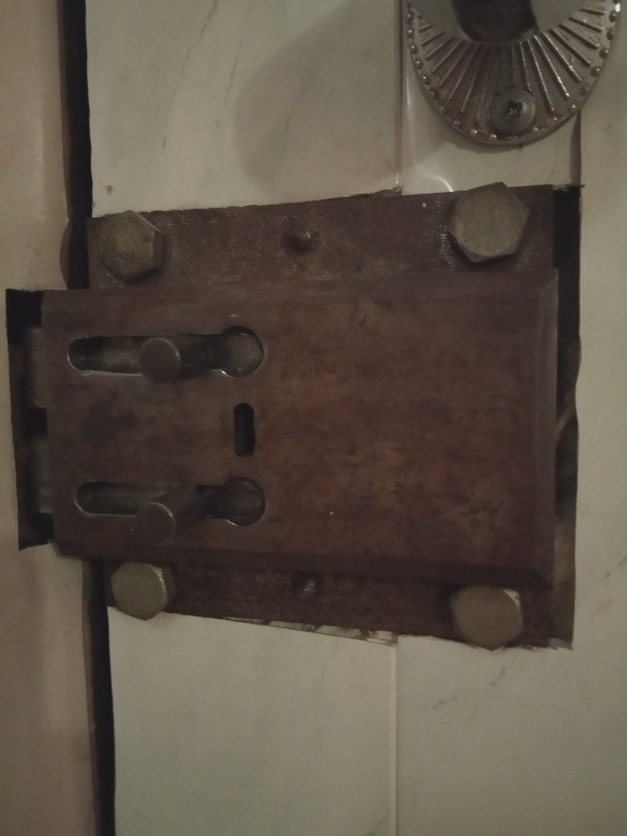 Снял недавно квартиру. В комплекте с массивной стальной дверью шел вот такой вот не менее суровый замок. Суть в том, что для его отпирания нужно просто с силой вставить ключ в отверстие.