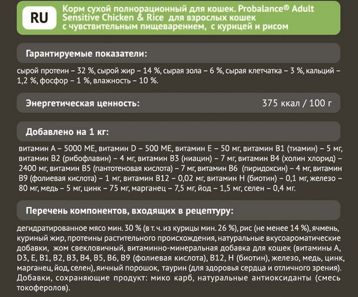 О том, достаточно ли в корме питательных веществ, долговременном использовании, ничего сказать не могу, т.к. корма один пакет и он скоро закончится. Если найду деньги на корм, не знаю буду ли покупать ProBalance, склоняюсь к Sirius, хотя до этого я покупал корм для котят, для взрослых котов не пробовал.