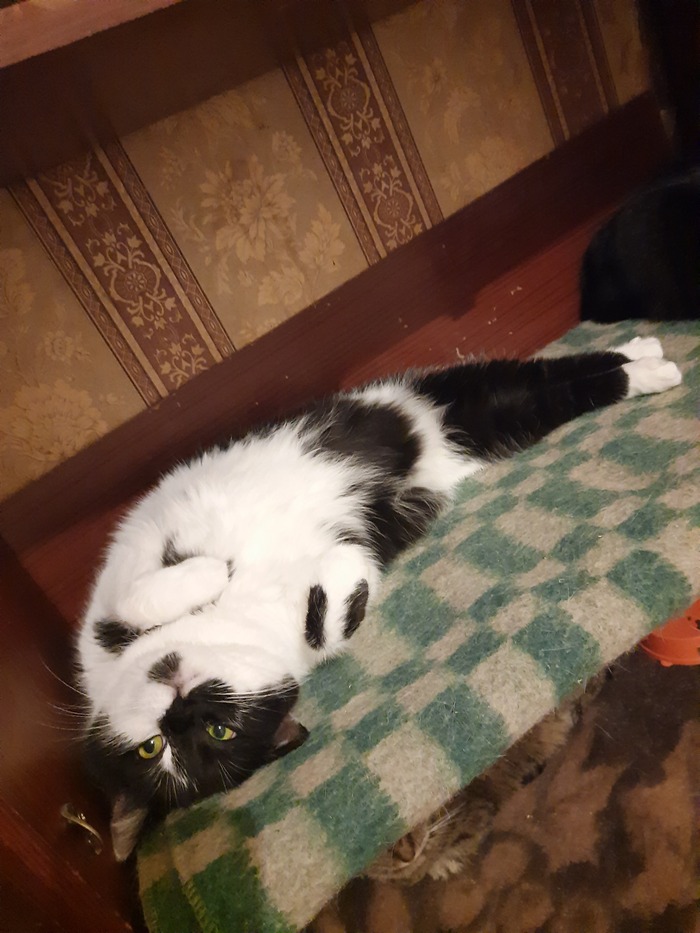 Корм Probalance Adult Sterilized (синяя упаковка), беру по 1.8 кг, хватает на 40 дней примерно. Раз в 2-3 дня даю влажный корм, который ему нравится. Плюс начал для него выращивать овёс, который он тоже обожает косить, пока тот сильно не вырастает.