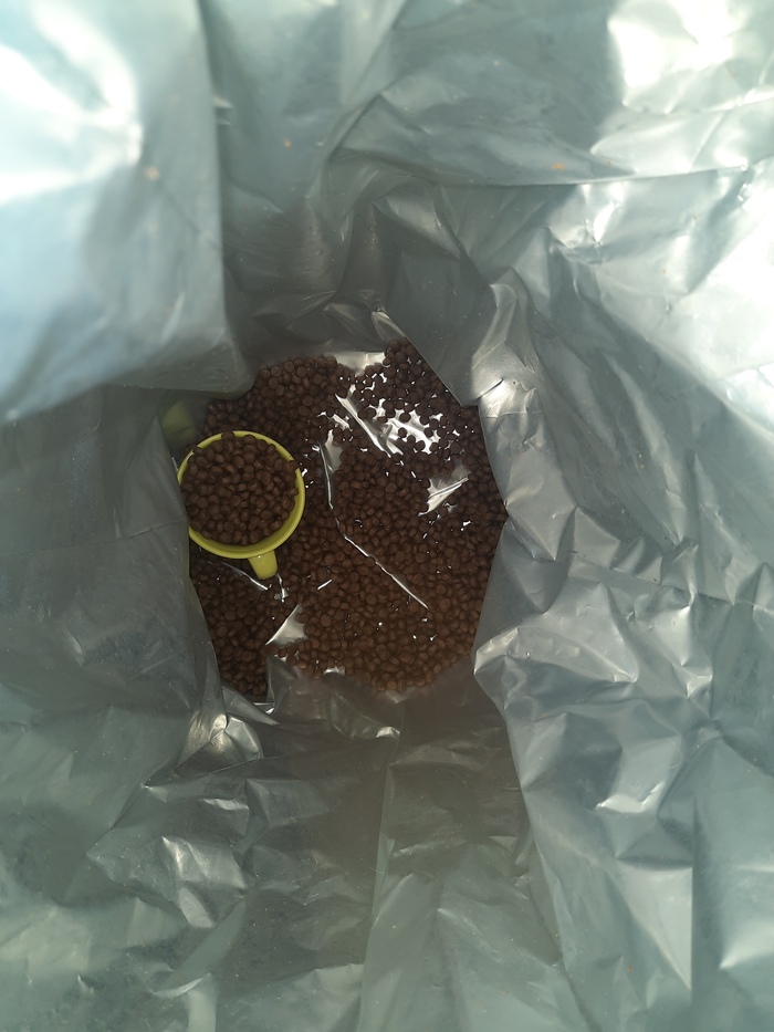 А это остатки предыдущего корма в мешке на утро субботы. Если бы мы не успели купить в пятницу корм, то остатков нехватало бы даже на субботнее утро 😔