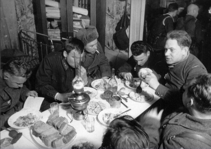 СТАЛИН. В неделю, хотя бы раз, сухой паек надо давать красноармейцам в мирное время.