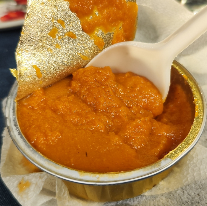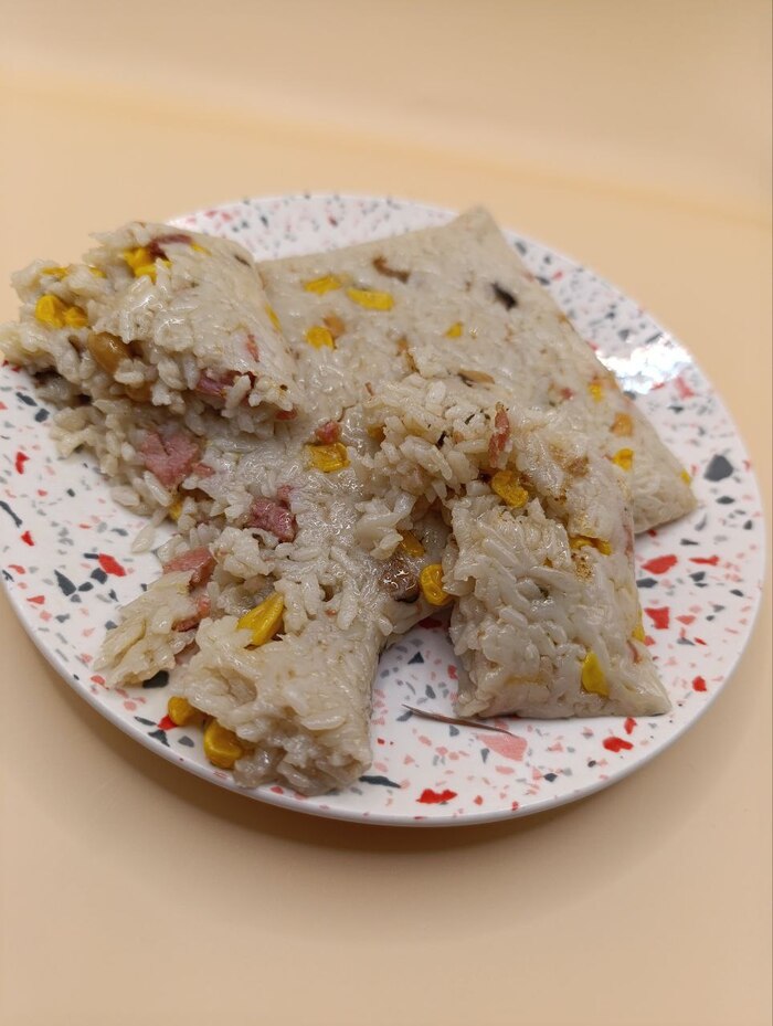 Здесь, конечно, не нужно быть грибником, чтобы понять простую истину: пред тобой стоит лось, а не мухомор. Рис разбух от столь тяжёлой жизни и стал косплеить опарышей. Соответственно и во рту он просто вероломно расползается, не имея какой-то внятной текстуры. Это немного неприятно.