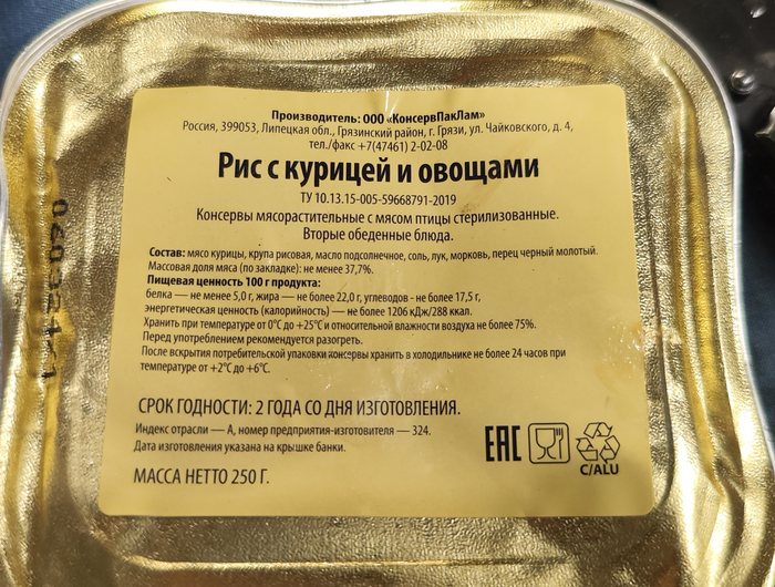 Рис с курицей и овощами. Снова ООО "КонсервПакЛам". Город Грязи.