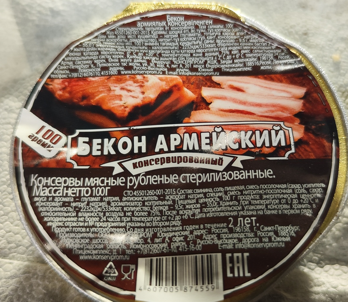 Бекон армейский. Производство находится в Ленинградской области.