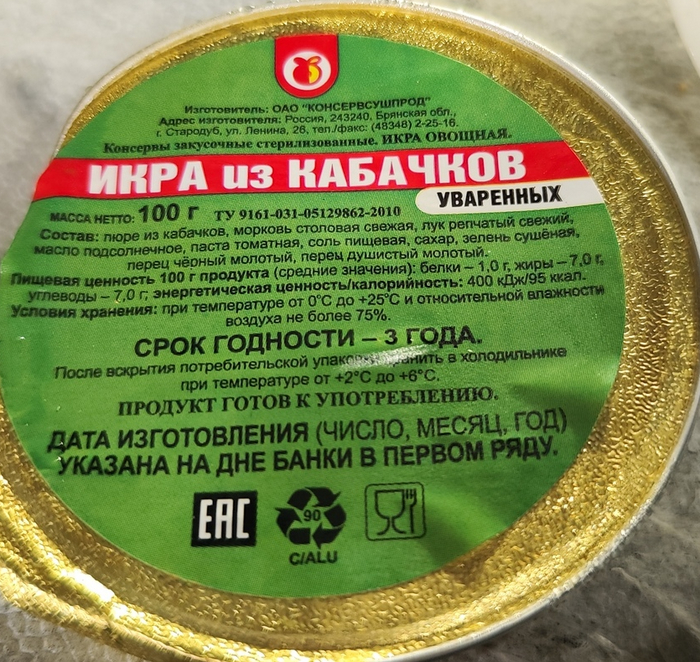 Икра из кабачков. ОАО "КОНСЕРВСУШПРОД". Брянская область.