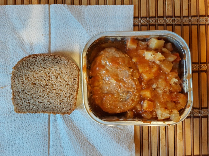 P.S. именно подлива повлияла на увеличение оценки по сравнению с макаронами по-флотски. За счёт неё котлета с картофелем оказалась не такой сухой. Например, при экстремальной ситуации отсутствия воды поможет утолить не только голод, но и немного унять жажду.