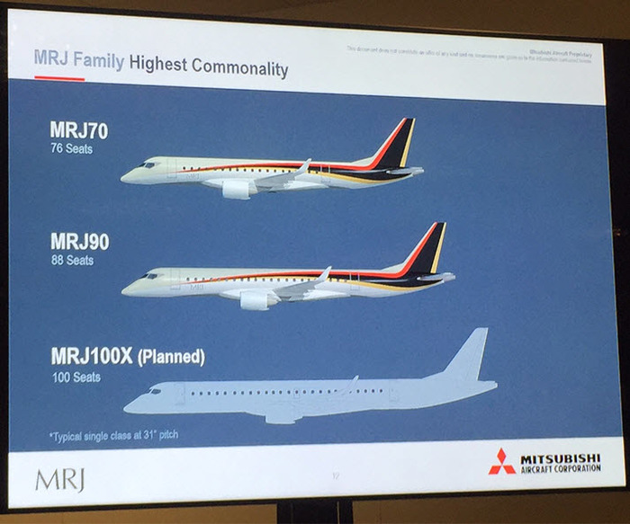 Наиболее перспективным самолетом на 70 – 90 пассажиров в настоящее время является японский Mitsubishi MRJ-70/90 — он и будет мировым супер-хитом в этом сегменте в следующем десятилетии. Прежде всего, необходимо отметить очень удачно выбранную ширину салона, равную 2,76 м — почти как у Embraer E175 (2,74 м). Для японцев такая ширина салона не нужна — здесь явный прицел на глобальный рынок. Стоит отметить, что у Ту-134 ширина салона была 2,61 м и лично мне летать на нем было комфортнее, чем на Ту-154, а тут на целых 15 см больше! Кто-то может сказать, что не так уж и велика разница — всего лишь 3 см на кресло и проход. Однако это очень много — даже из-за одного сантиметра семьи распадаются.