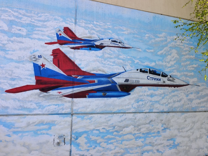 Но. т.к. имеется аэродром, на котором базируются пилотажные группы Стрижи и Русские Витязи, то над головой в небе периодически случается красивое и величественное! С грохотом, рёвом и дрожью, под которые сладко спят детишки в колясках. Это, и прочее авиационное местами увековечивается увлечёнными людьми.